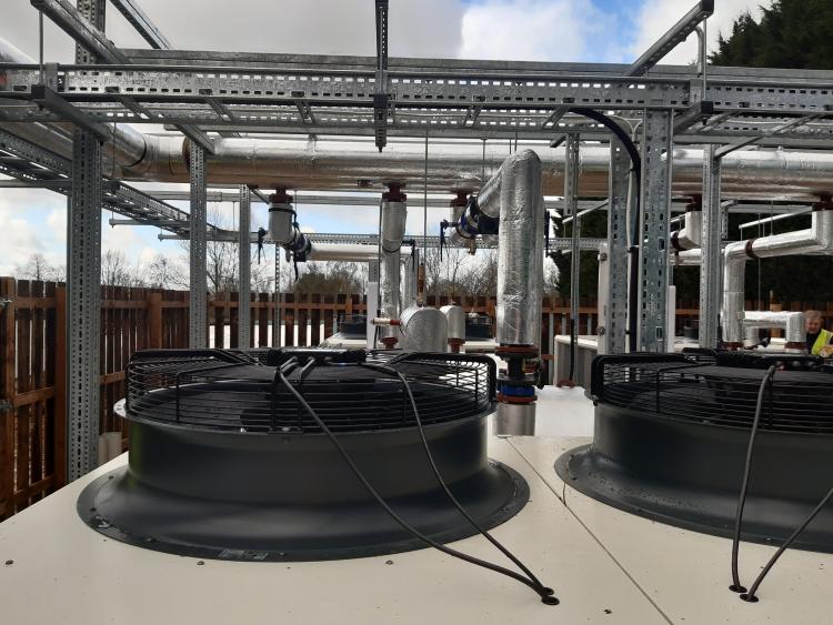 Heat pumps involve heat transfer via a refrigeration circuit which, unlike fossil-fuel run boilers, does not utilise combustion nor cause the release of carbon dioxide into the atmosphere. New distribution pipework and energy saving materials have also been installed by the college.